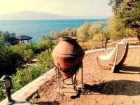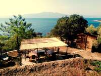 Natur pur genießen in Sivrice, in der Region Ayvacik/Canakkale. Gegenüber Lesbos gelegen, direkt am Meer, ein außergewöhnliches Gästehaus (Naturstein in Erdlage) in Alleinlage in einem 21000qm großen gepflegten Olivenhain.